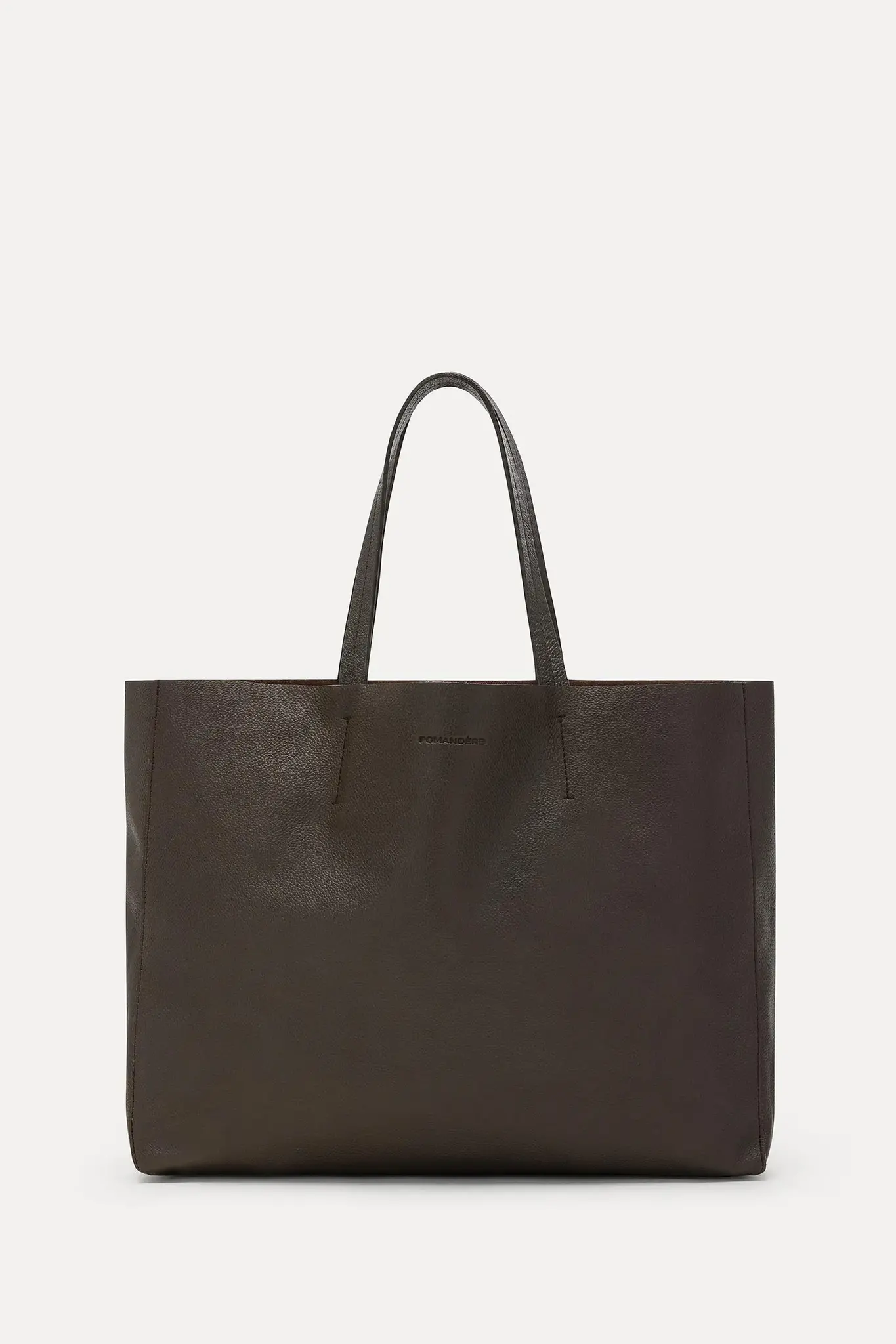 A refined and very feminine aesthetic meets fine materials. The leather highlights subtle irregularities that give a delicate three-dimensional effect to the silhouette, reminiscent of the classic shopper bag.