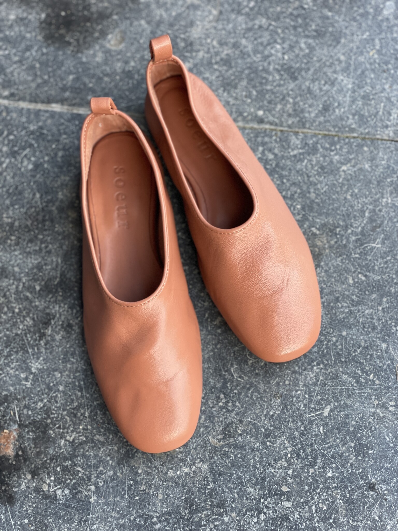 Soft leather ballet flats with round toe