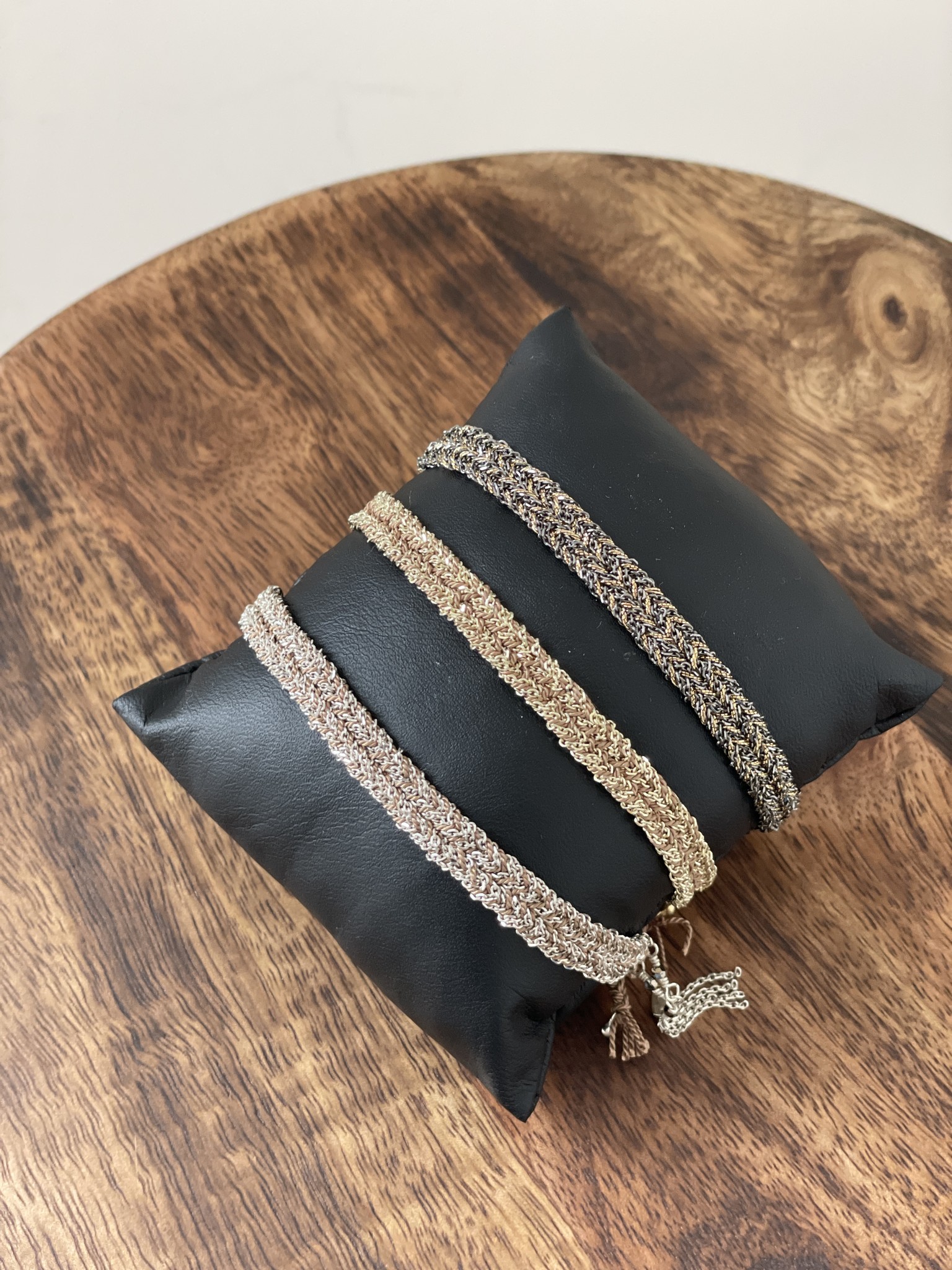 Sliding knot closure with 5 cm silk cord on both ends to adjust to any wrist.