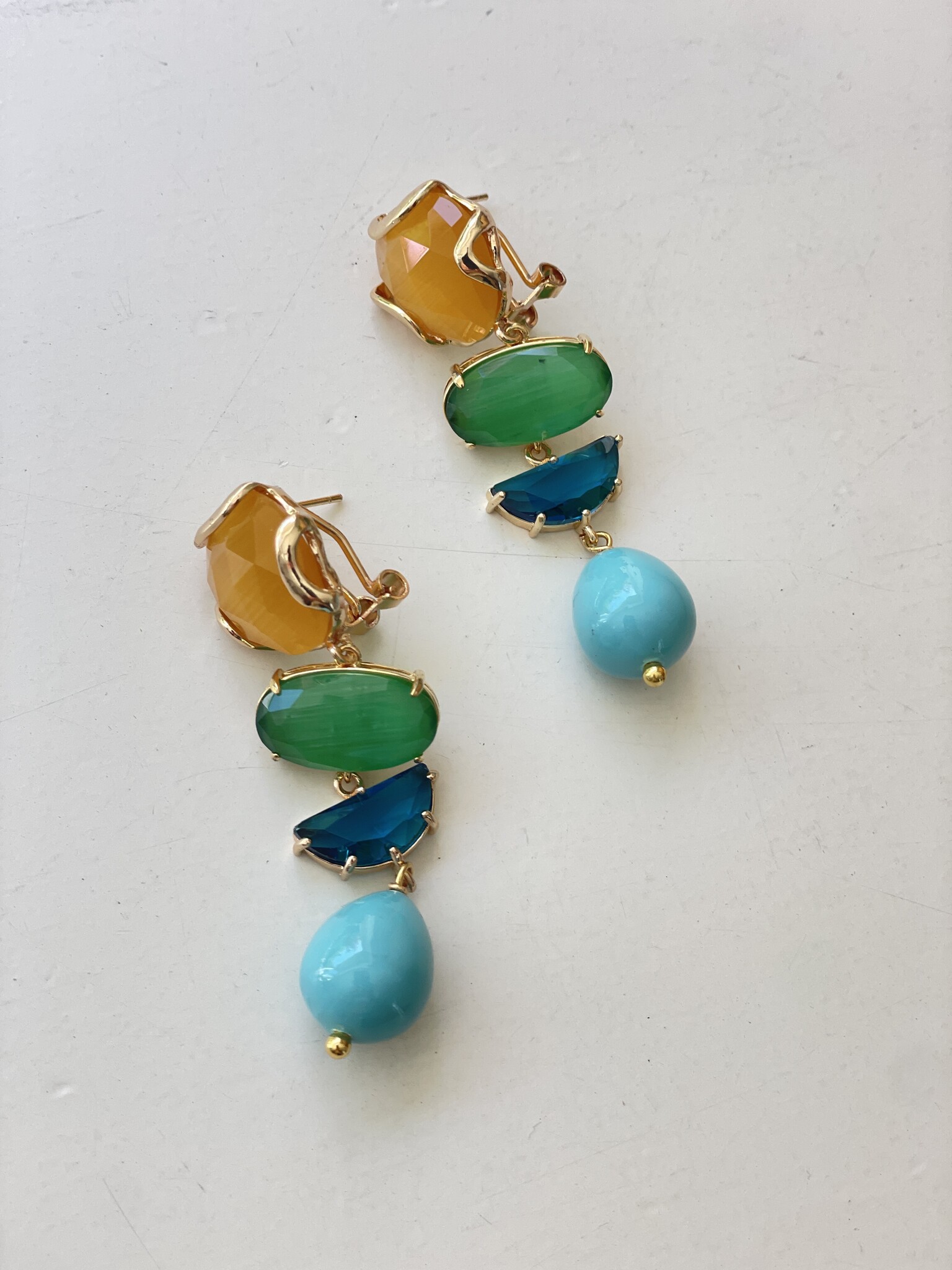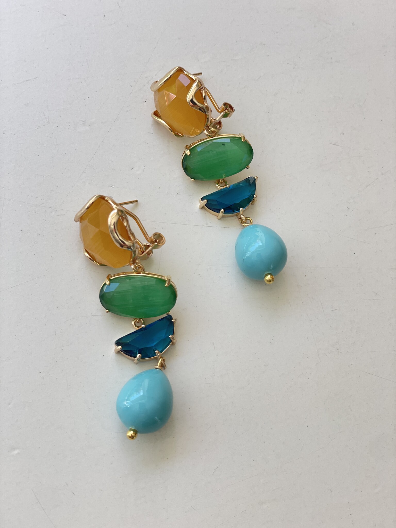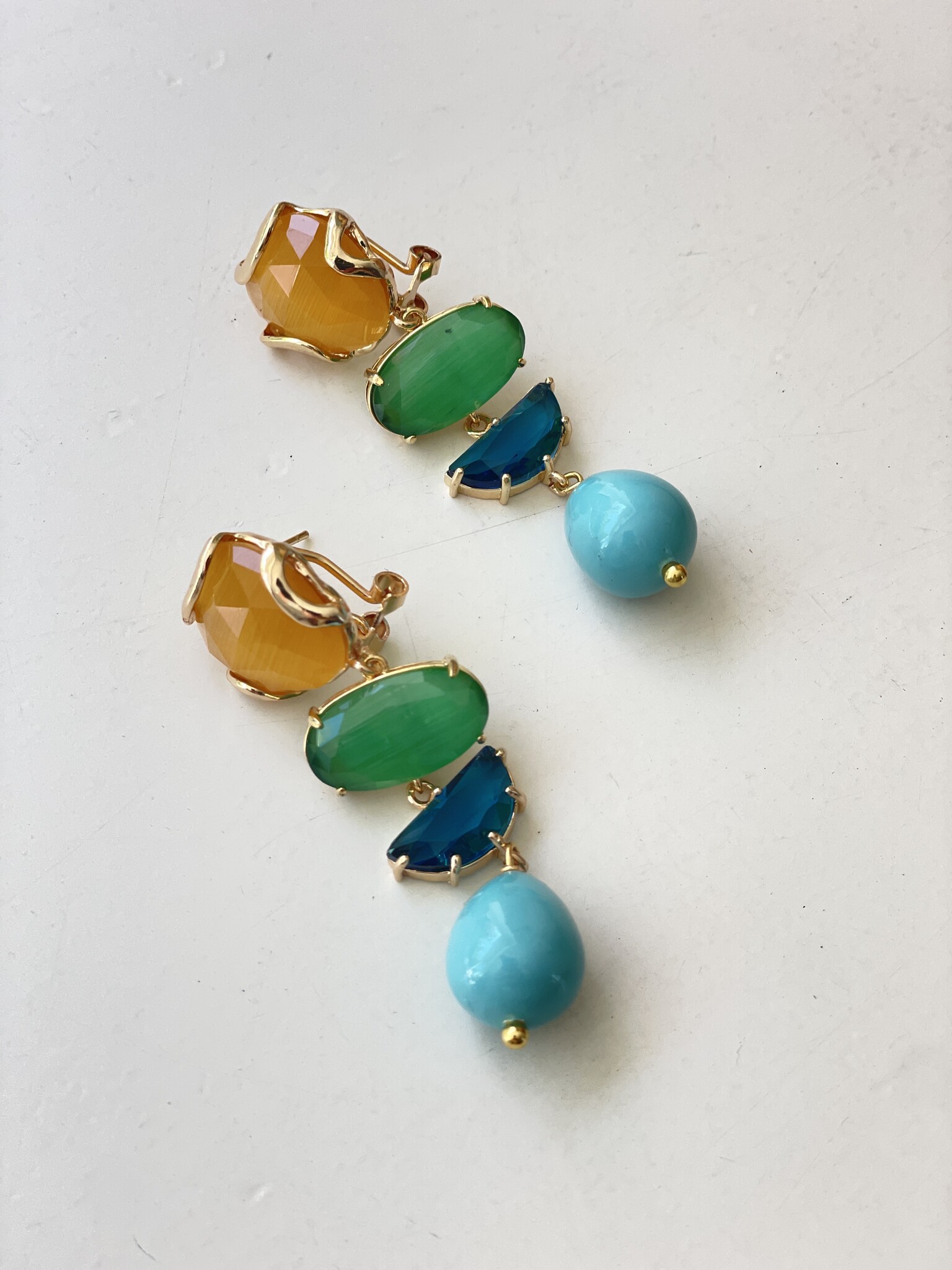 - Material: Faceted crystals, synthetic cat's eye drops