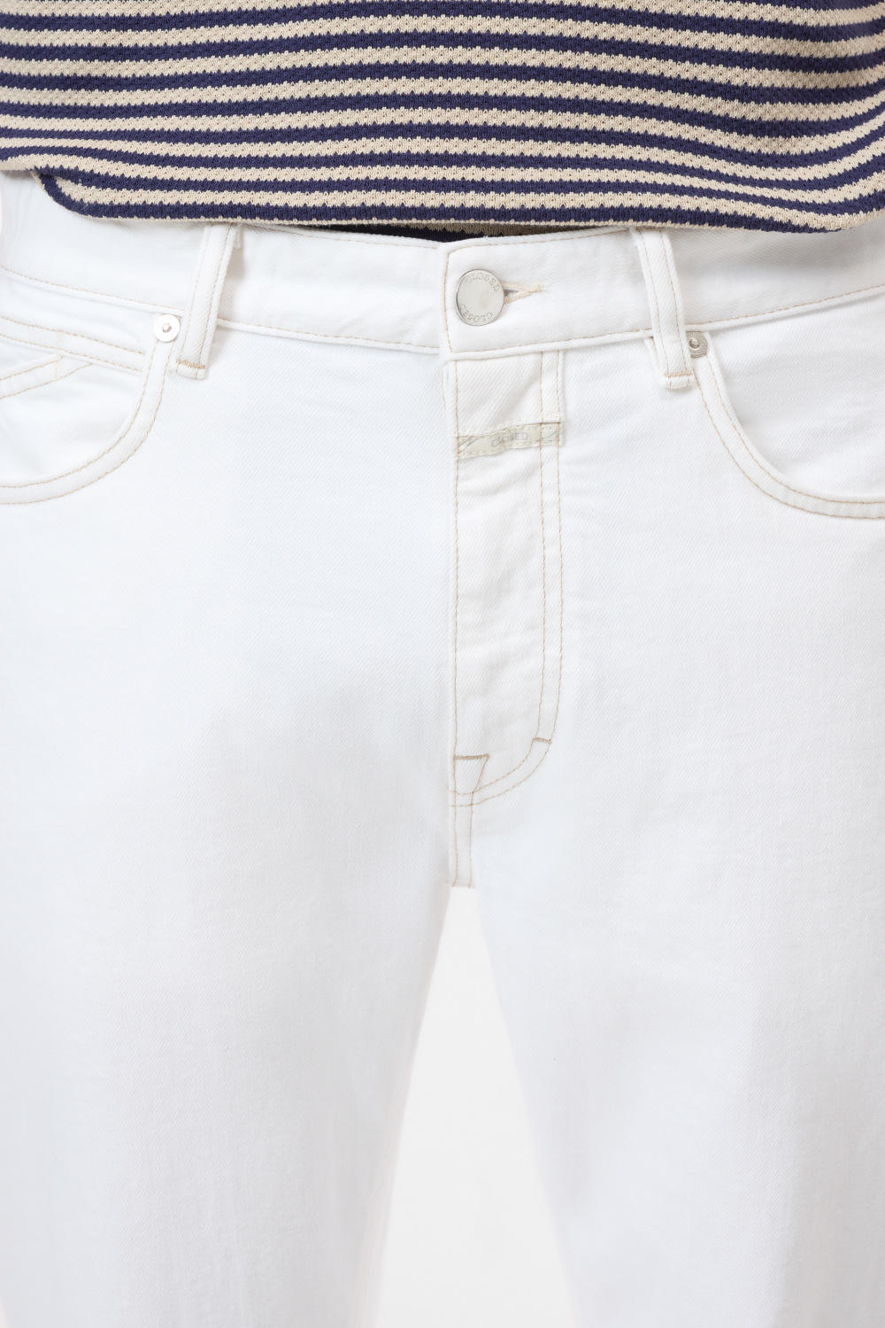+ Weight: 11 oz / Dye type: Garment dyed / Elasticity: 20% / Country: Italy, mill: Candiani / Feature: Comfort white denim with an even surface structure / Eco aspect: BCI cotton, microplastics free sizing.