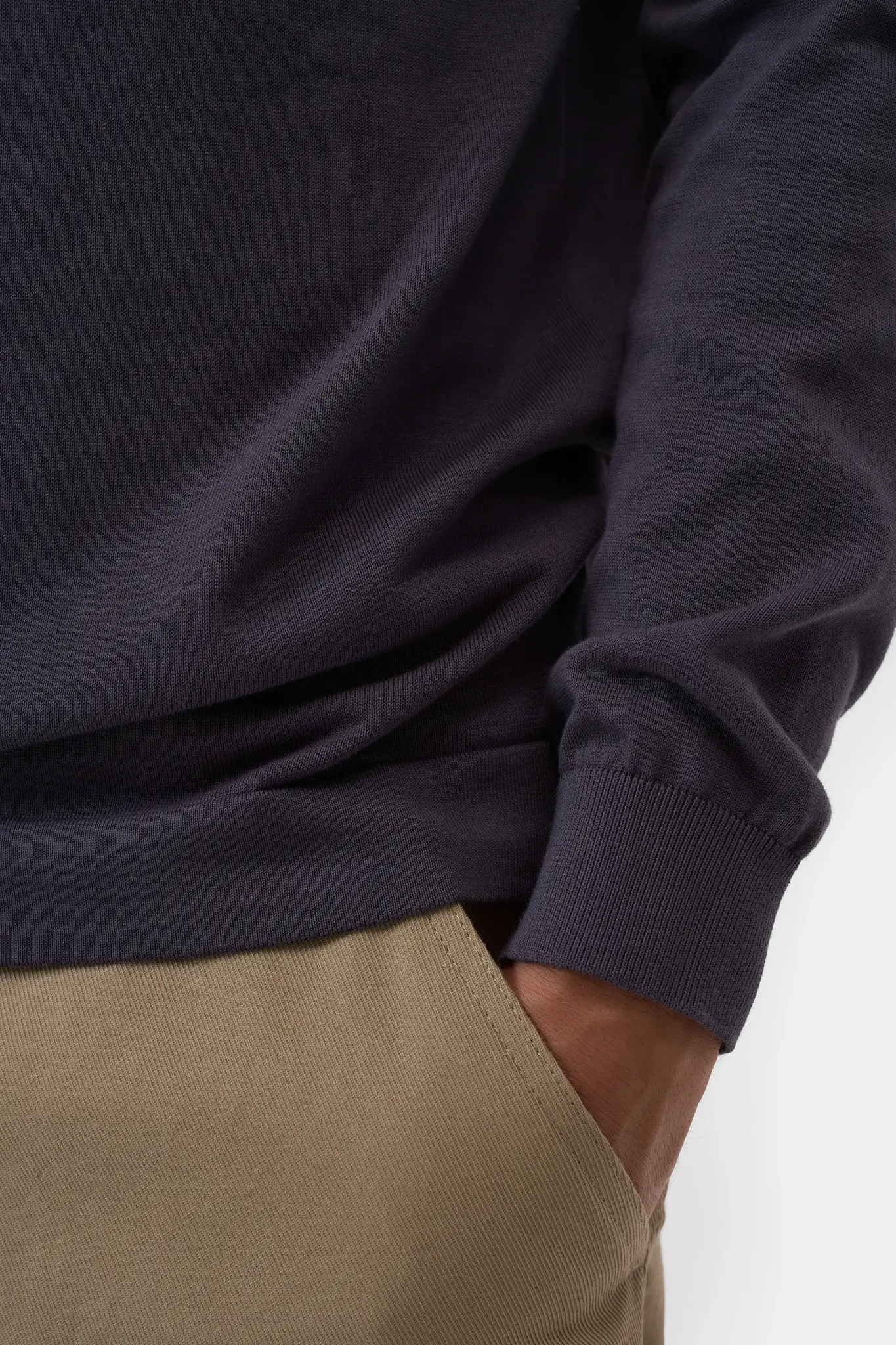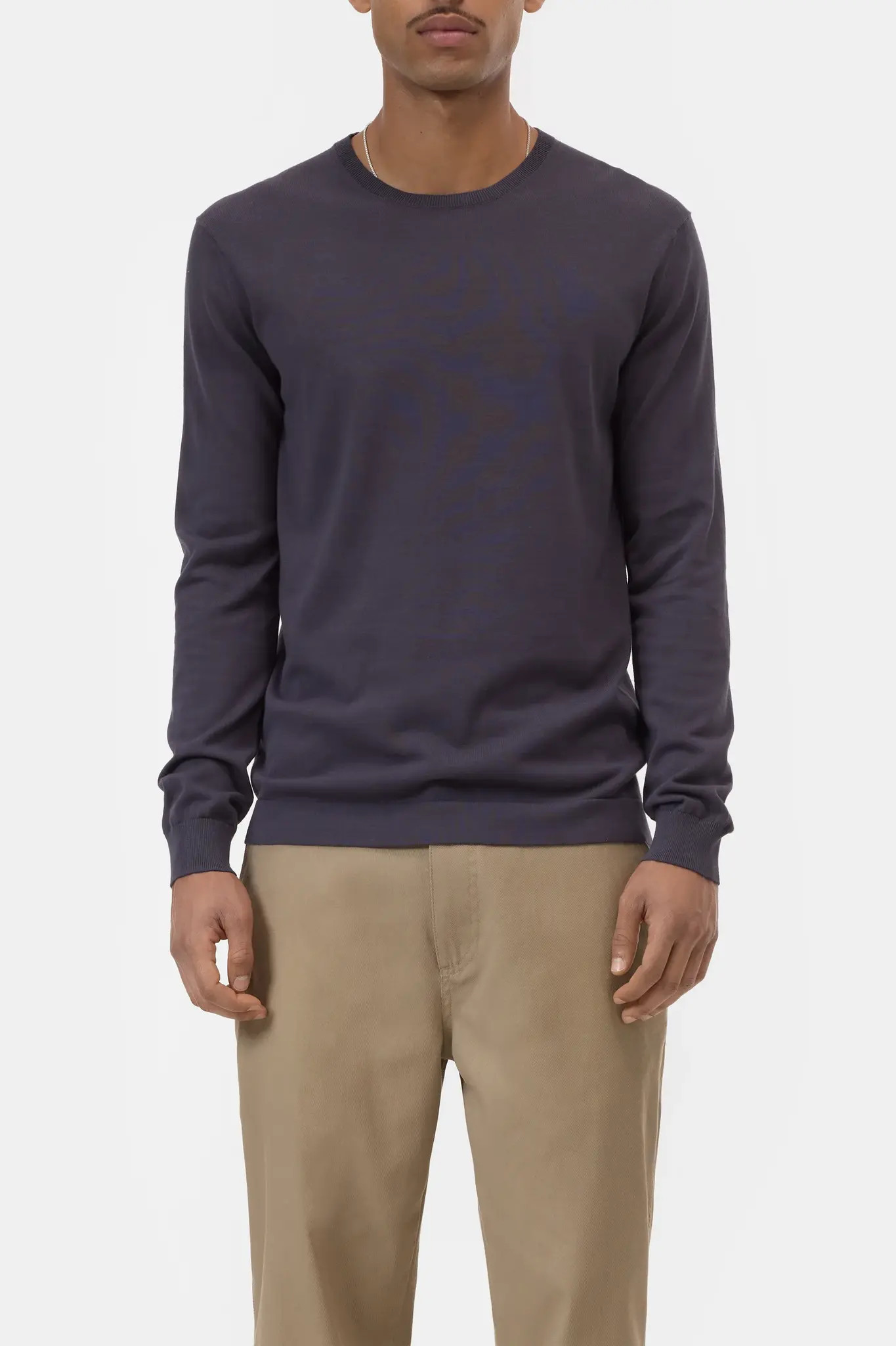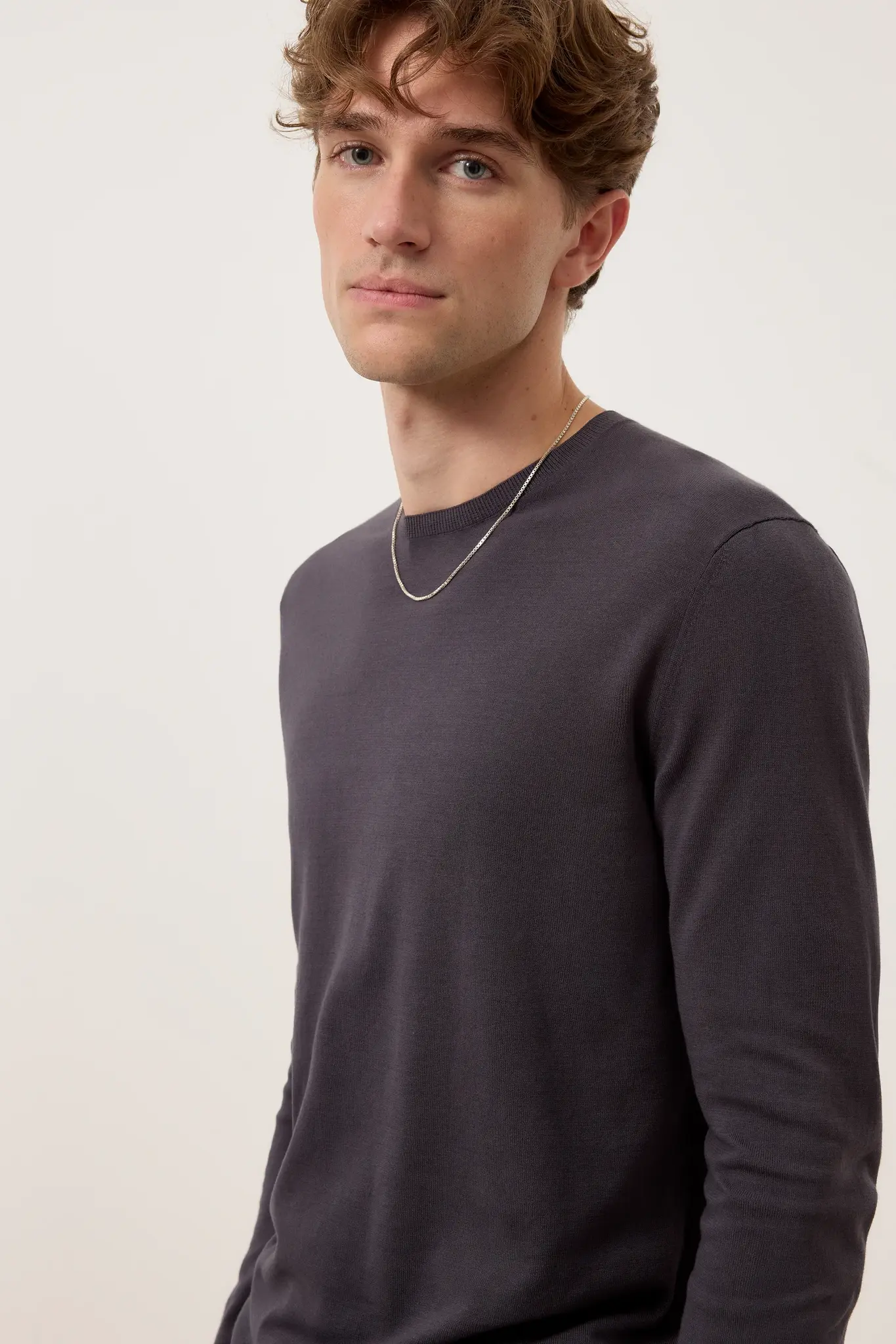 Round-neck jumper made of pure cotton in fine knit. Featuring ribbed cuffs and a smooth hem.
