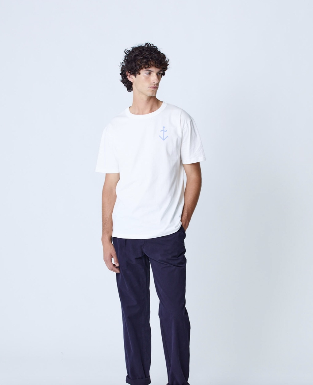 Soft and simple, the off-white Dantas tee features a wind blue anchor logo on the front.