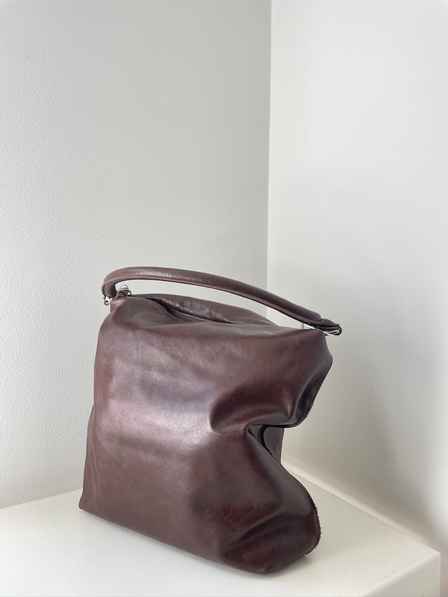 - interior zip pocket with metal puller