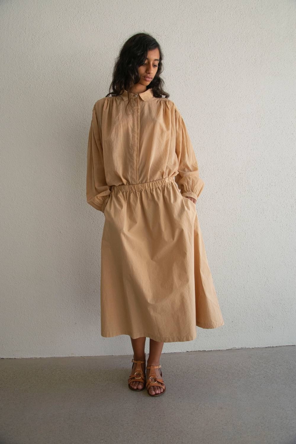 - Soft flared silhouette