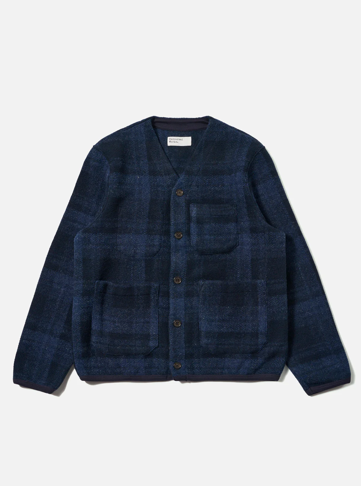 Back FavouritesUniversal Works fleece cardigan check navy Back to overview € 170,00 Incl. taxjacketRead the full product descriptionMake a choice: xsQuantityAdd to cartDirect checkout In stockProduct descriptionRegular fit.Curved v-neck collar.Five button front.Bound, soft cotton rib.Single patch chest pocket.Two large patch hand pockets.Inside pocket.60% Acrylic, 20% Wool, 20% Recycled Polyester.Recently viewedFavoritenAdd to cartUniversal Works fleece cardigan check navy € 170,00 Incl. tax