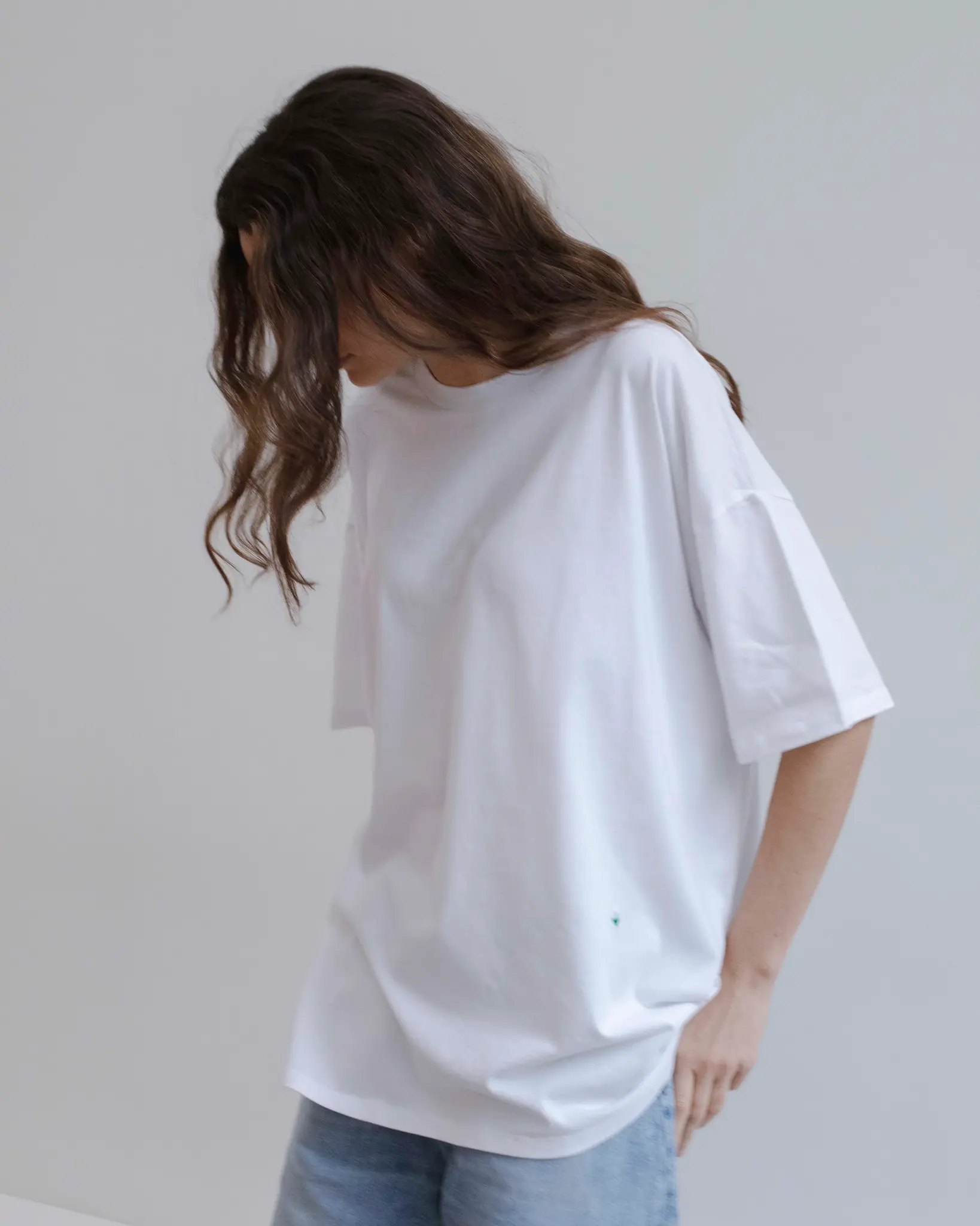 Our oversized Jean T-Shirt made of the softest organic cotton. With our signature two-tone embroidered logo.
