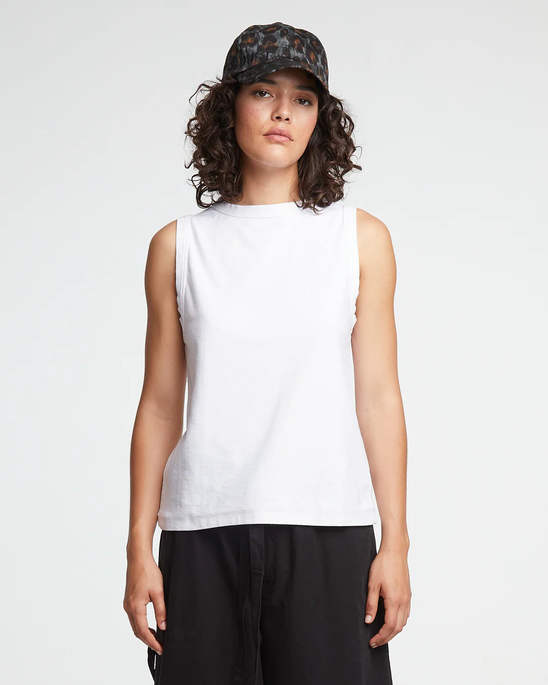 This sleeveless crewneck tank top will always come in handy, whether you're combining it with denim, shorts or a skirt. Made from organic Portuguese open end cotton.