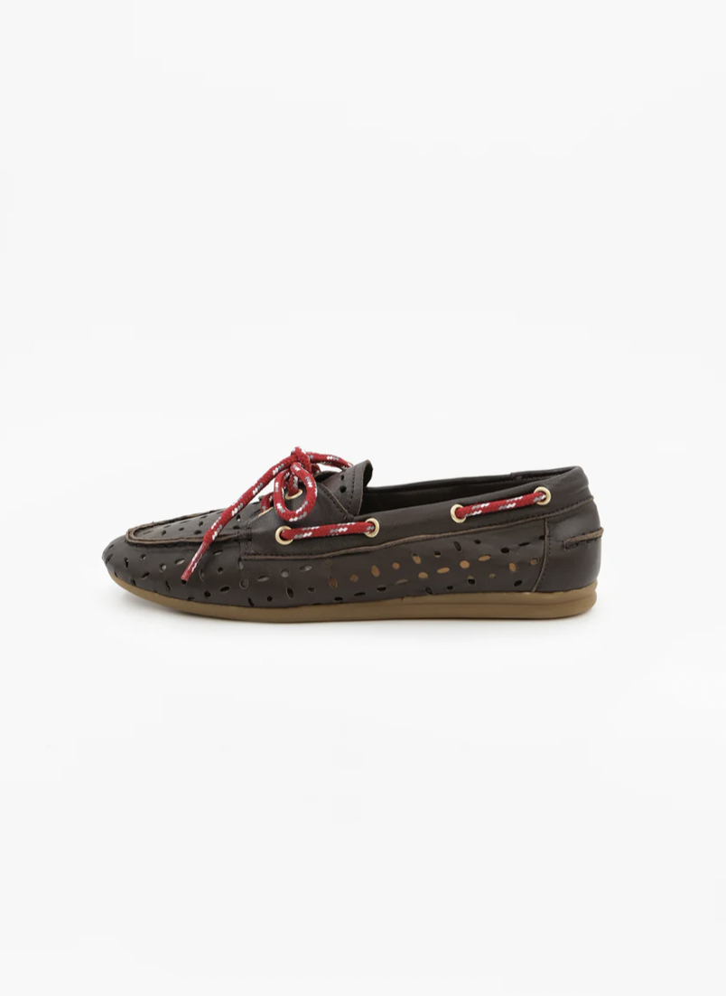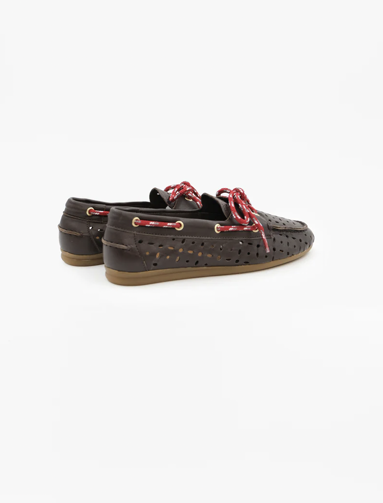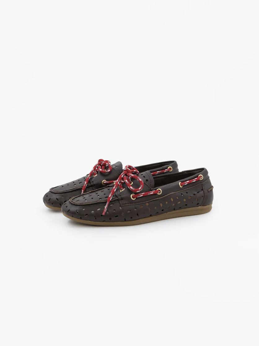 Perforated leather upper Round toe Contrast twisted lace detail with metal eyelets Upper: leather Lining and insole: leather Sole: rubber Chocolate leather