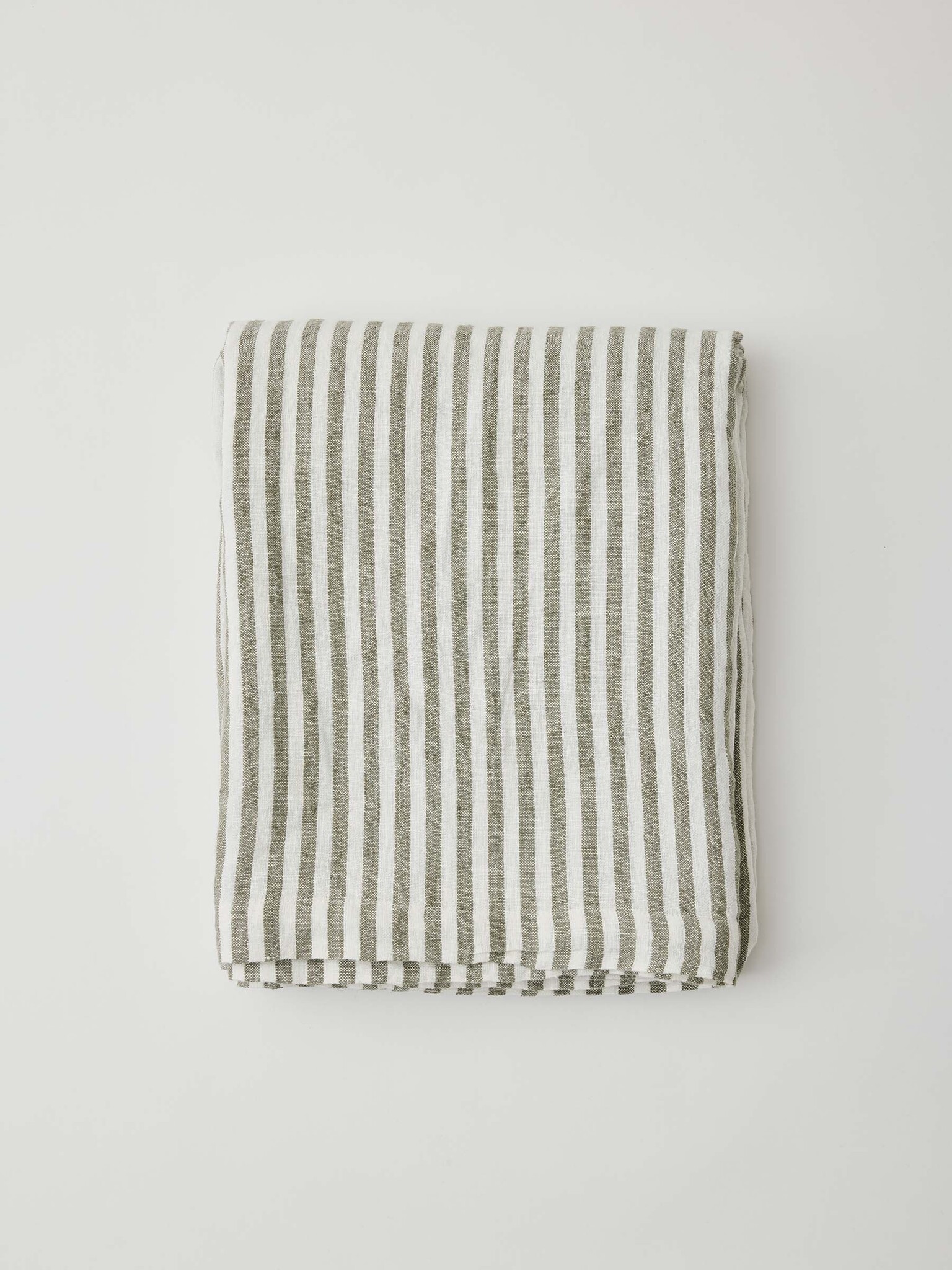 Handwoven tablecloth in 100% linen with a decorative selvage edge.