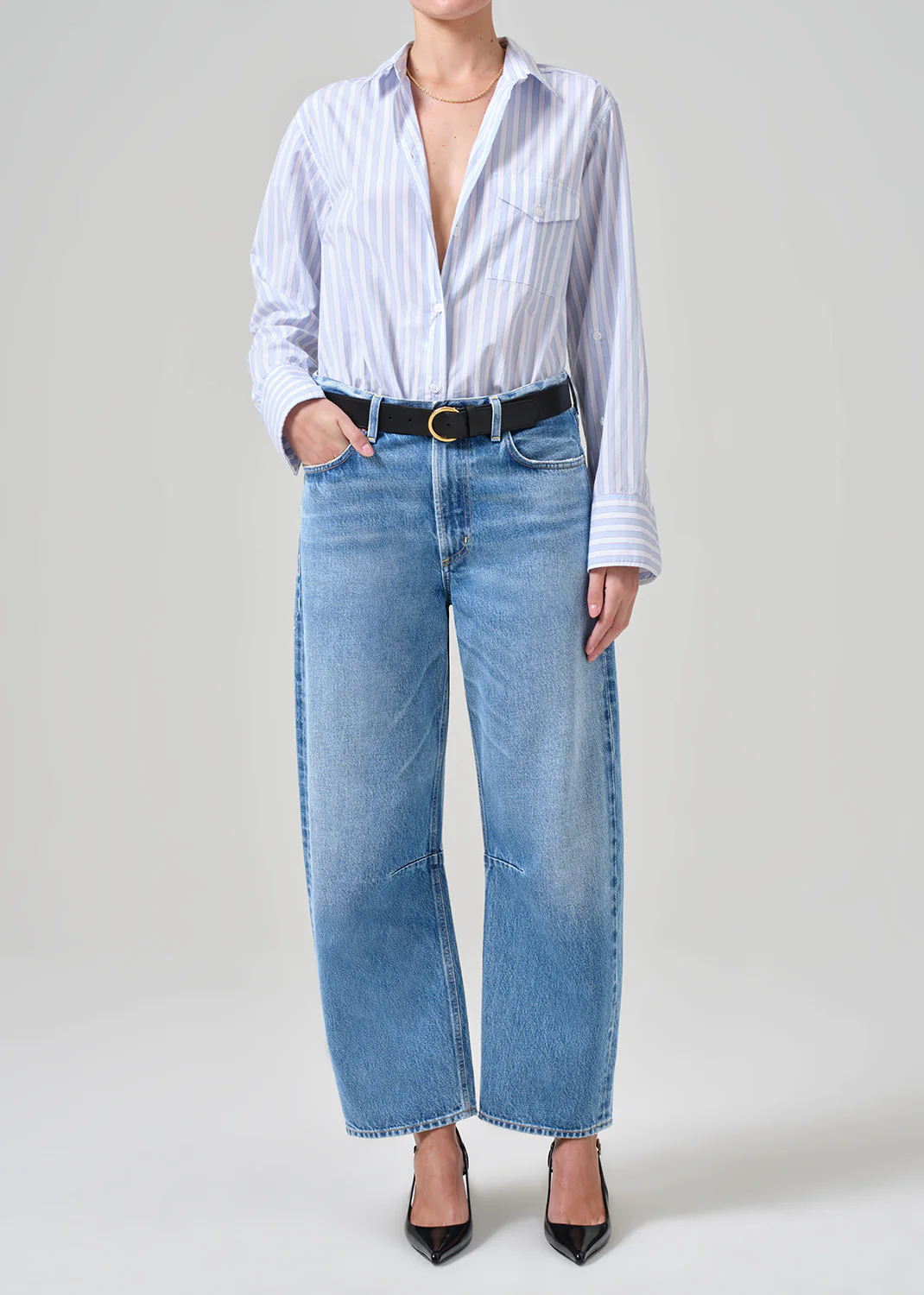The Miro jean offers a slightly relaxed top block and tapered take on the barrel leg silhouette.
