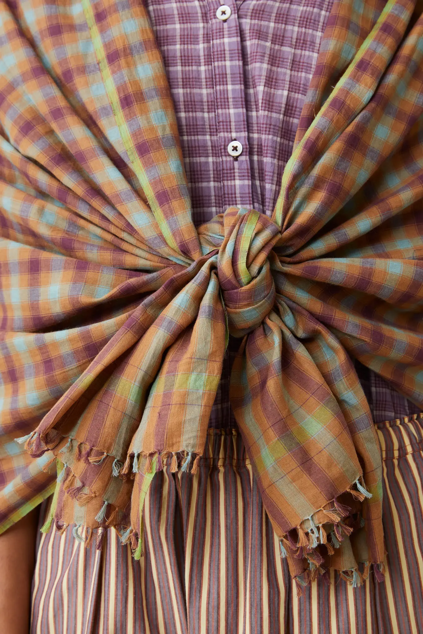 - Fringe finish, tied at the base