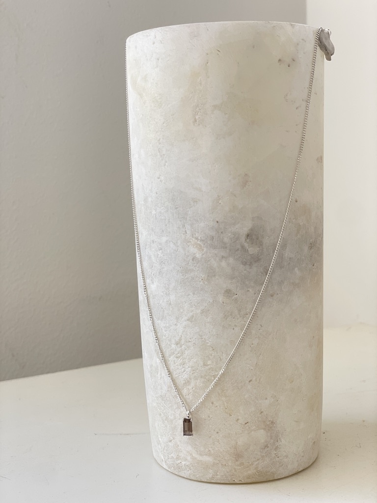 This striking necklace combines a delicate chain with a simple black stone pendant, resulting in an eye-catching piece that captures both light and shadow. Its minimalist design is versatile, making it the perfect accessory for a variety of outfits and occasions.