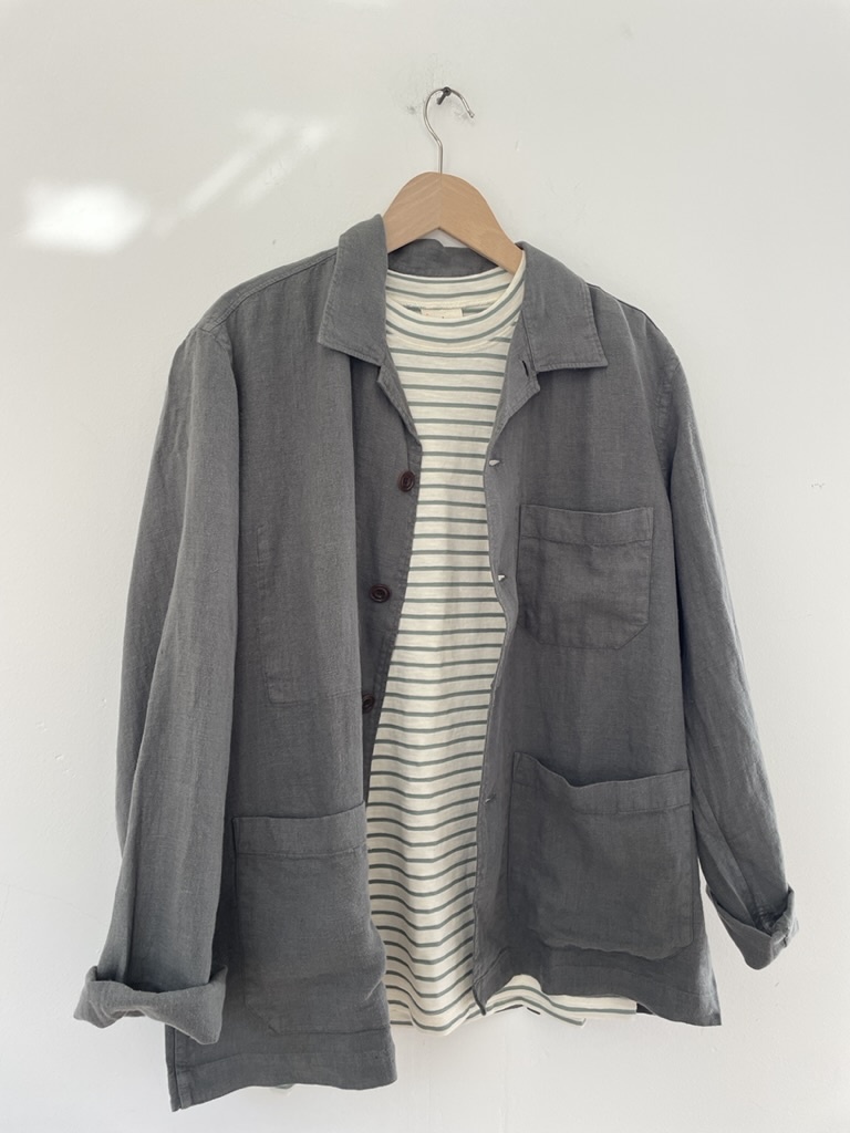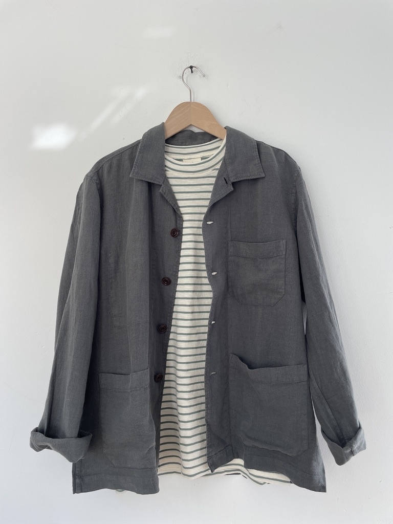 PERRY men's workwear-inspired jacket with patch pocket on chest and two patch pockets at waist.