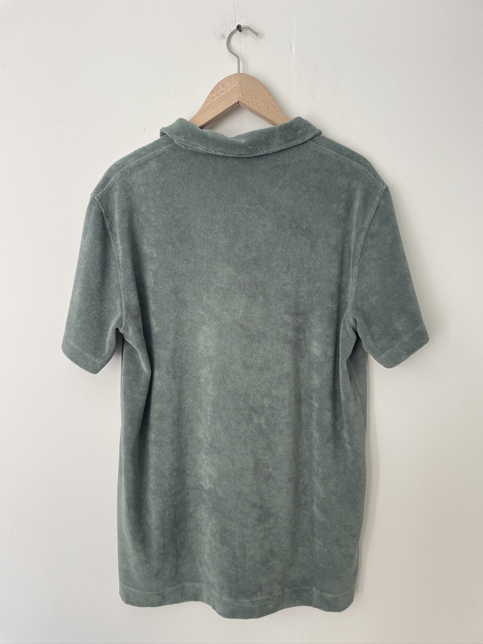 A men’s shirt in soft cotton terry towelling with a relaxed fit and open collar. Easy, timeless and designed to live in.