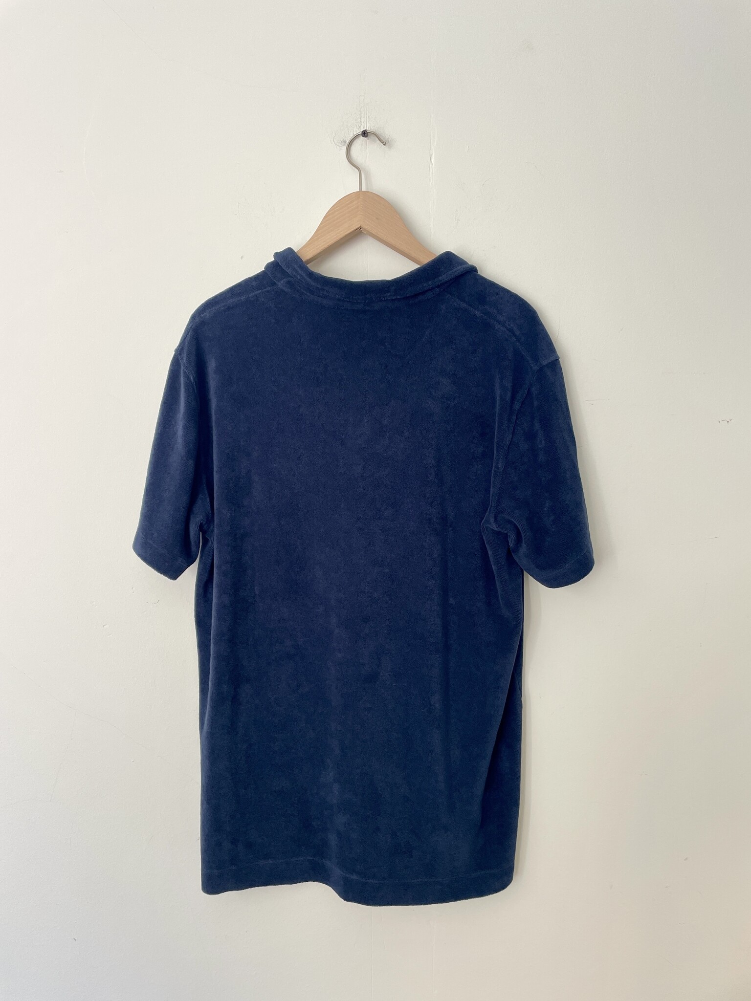 A men’s shirt in soft cotton terry towelling with a relaxed fit and open collar. Easy, timeless and designed to live in.