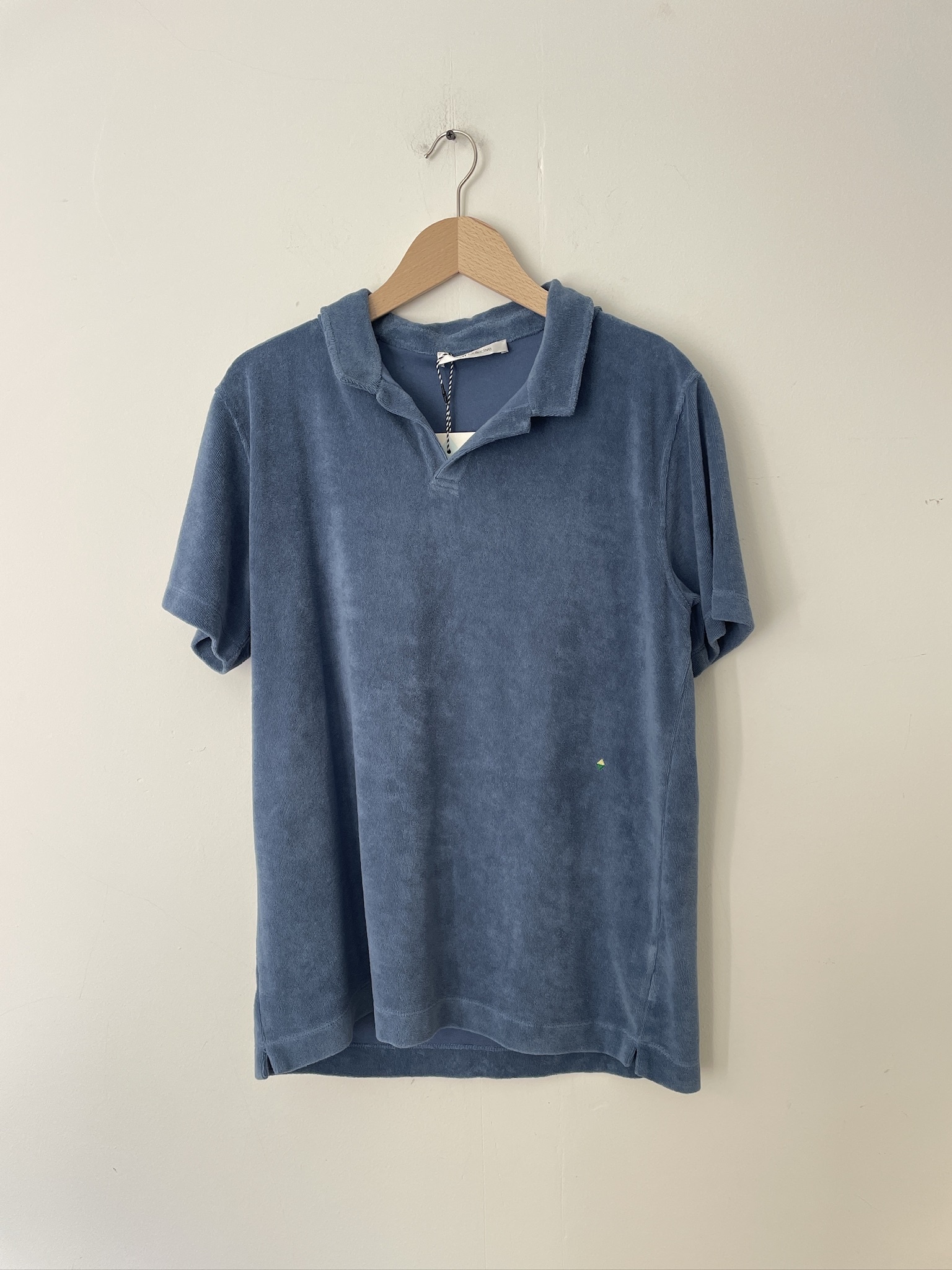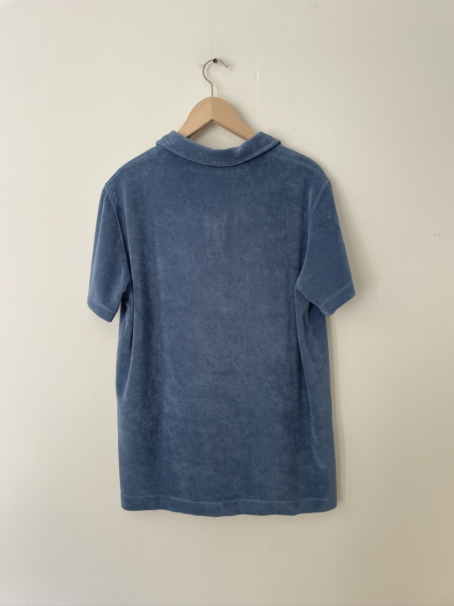 A men’s shirt in soft cotton terry towelling with a relaxed fit and open collar. Easy, timeless and designed to live in.