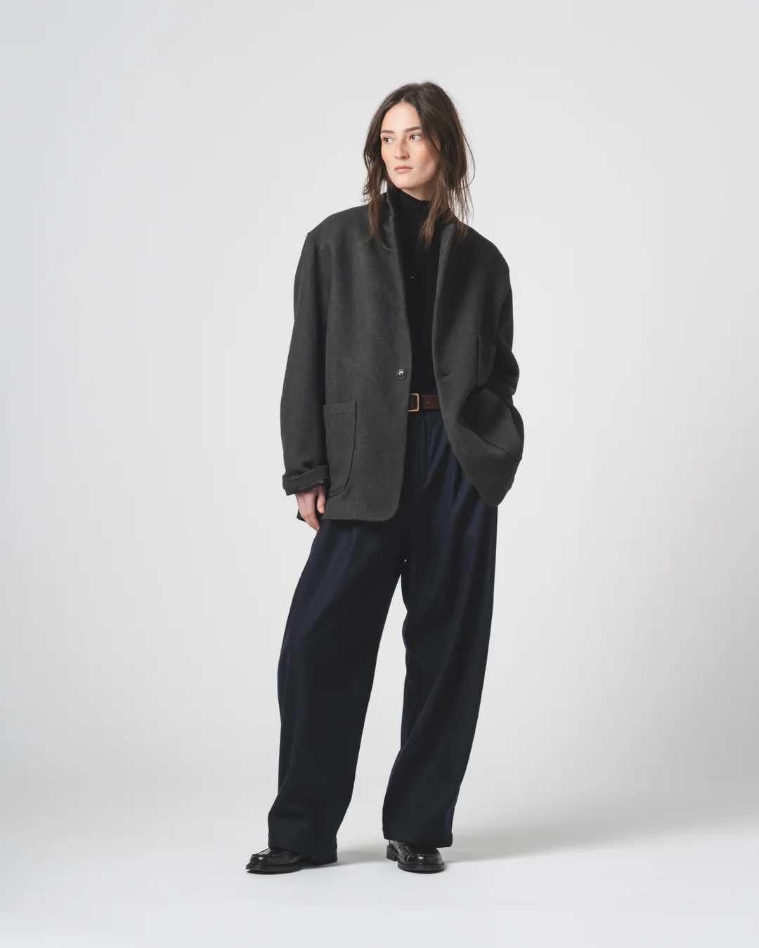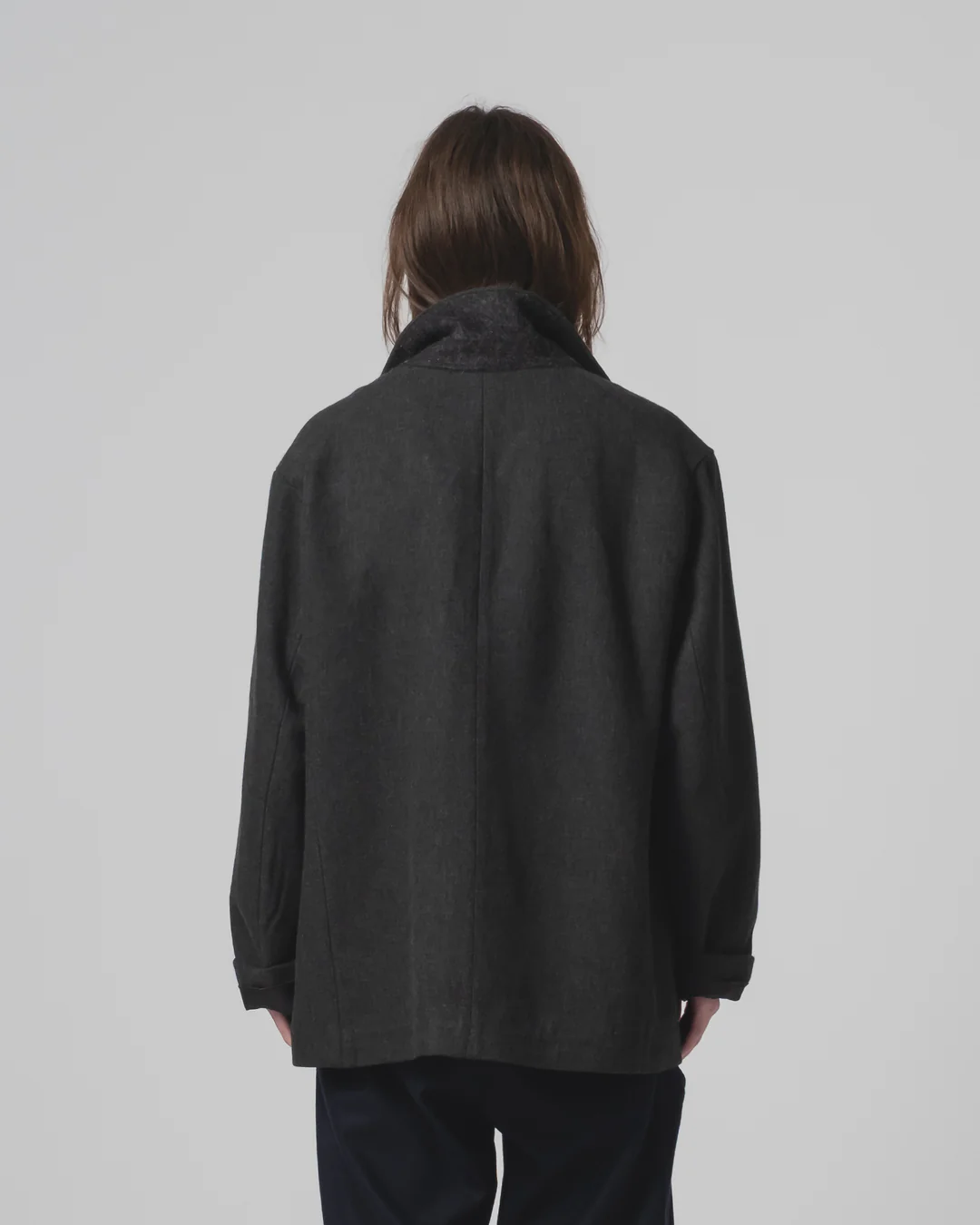 Double breasted blazer! It fits kind of oversized and boxy, plus feels a lot more casual than a regular blazer would. Made from a Wool blend for the colder days. Finished with big front pockets and a small chest pocket.