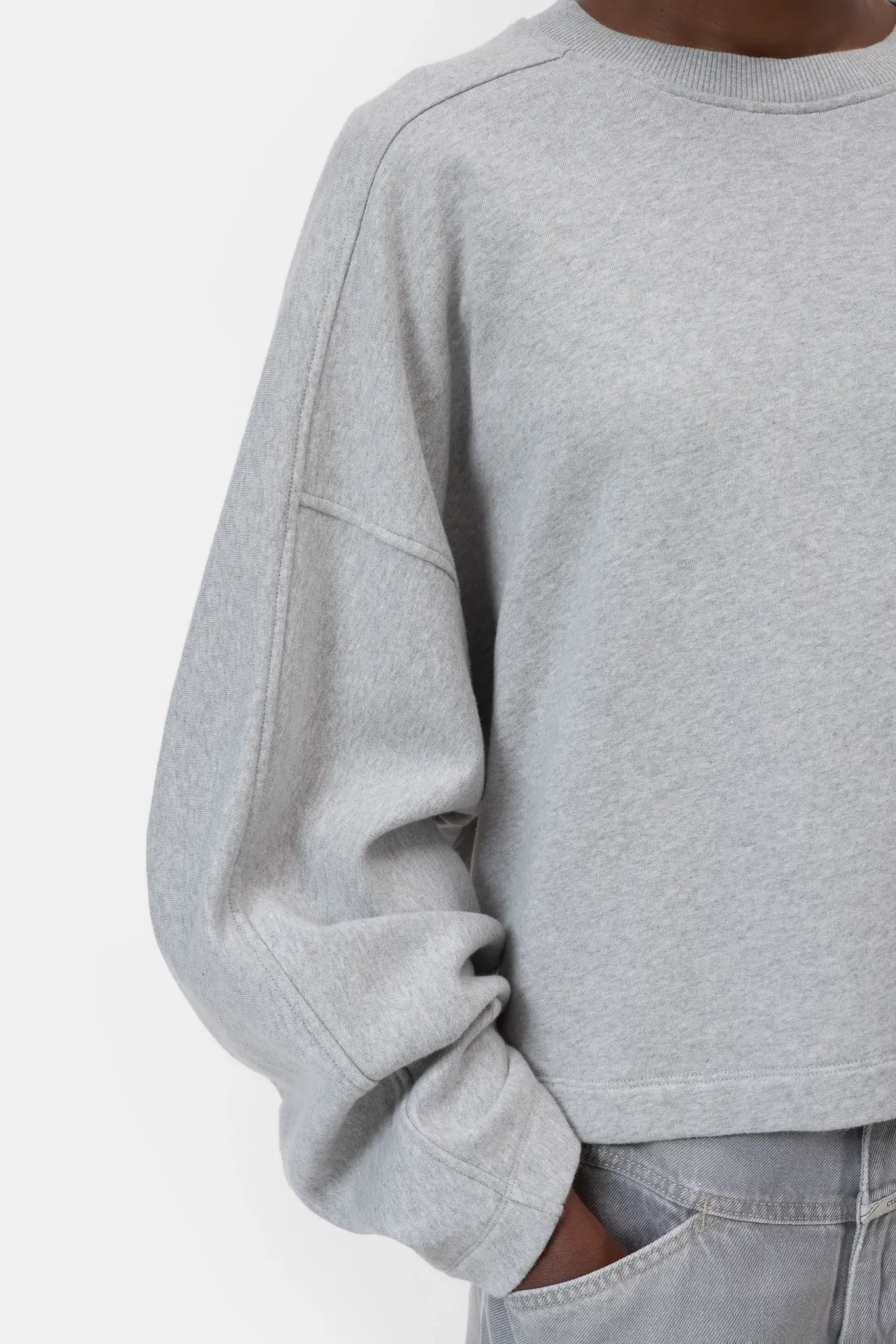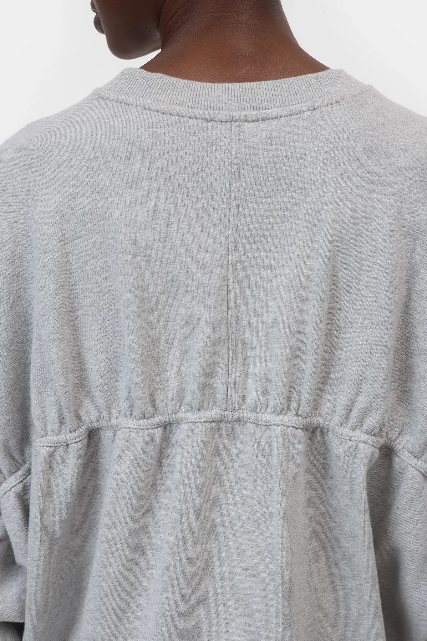 This relaxed fit sweatshirt is made from pure cotton. It features gathered details that run from sleeve to sleeve across the back. With a round neckline, straight hem and small logo label on the side seam. Made in Portugal.