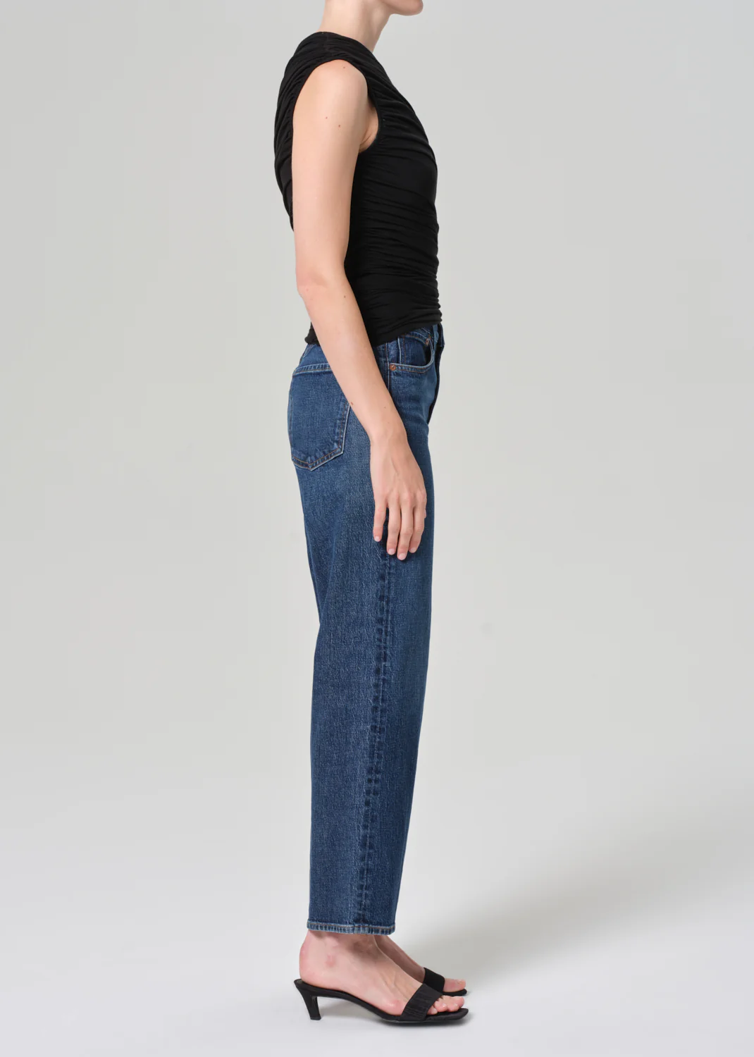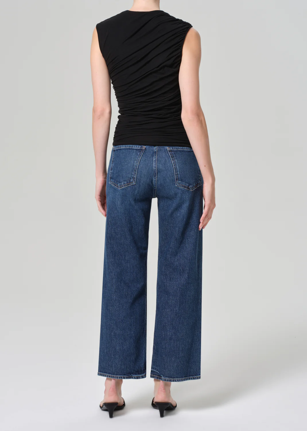 Ren jeans are crafted from recycled cotton, offering a relaxed fit with a high-rise waist and cropped wide legs.