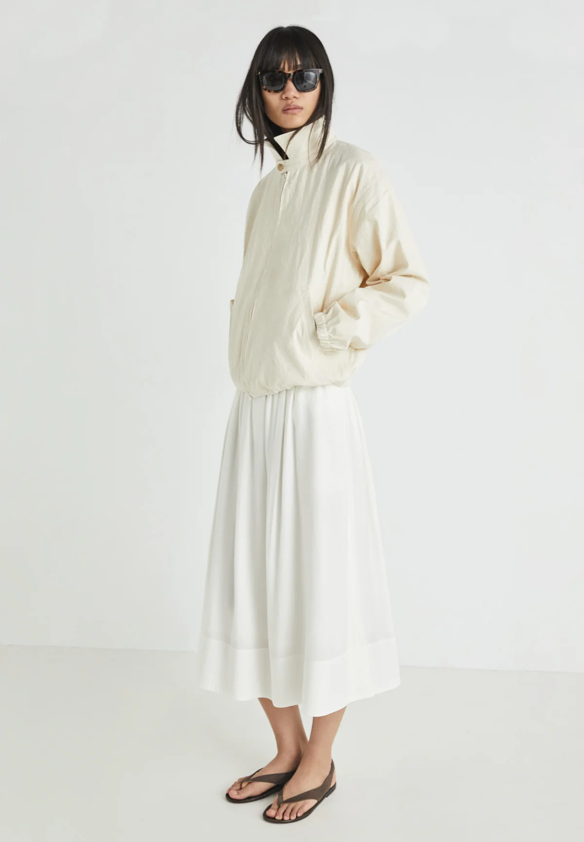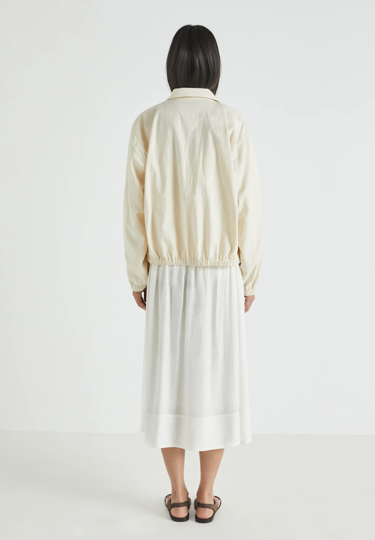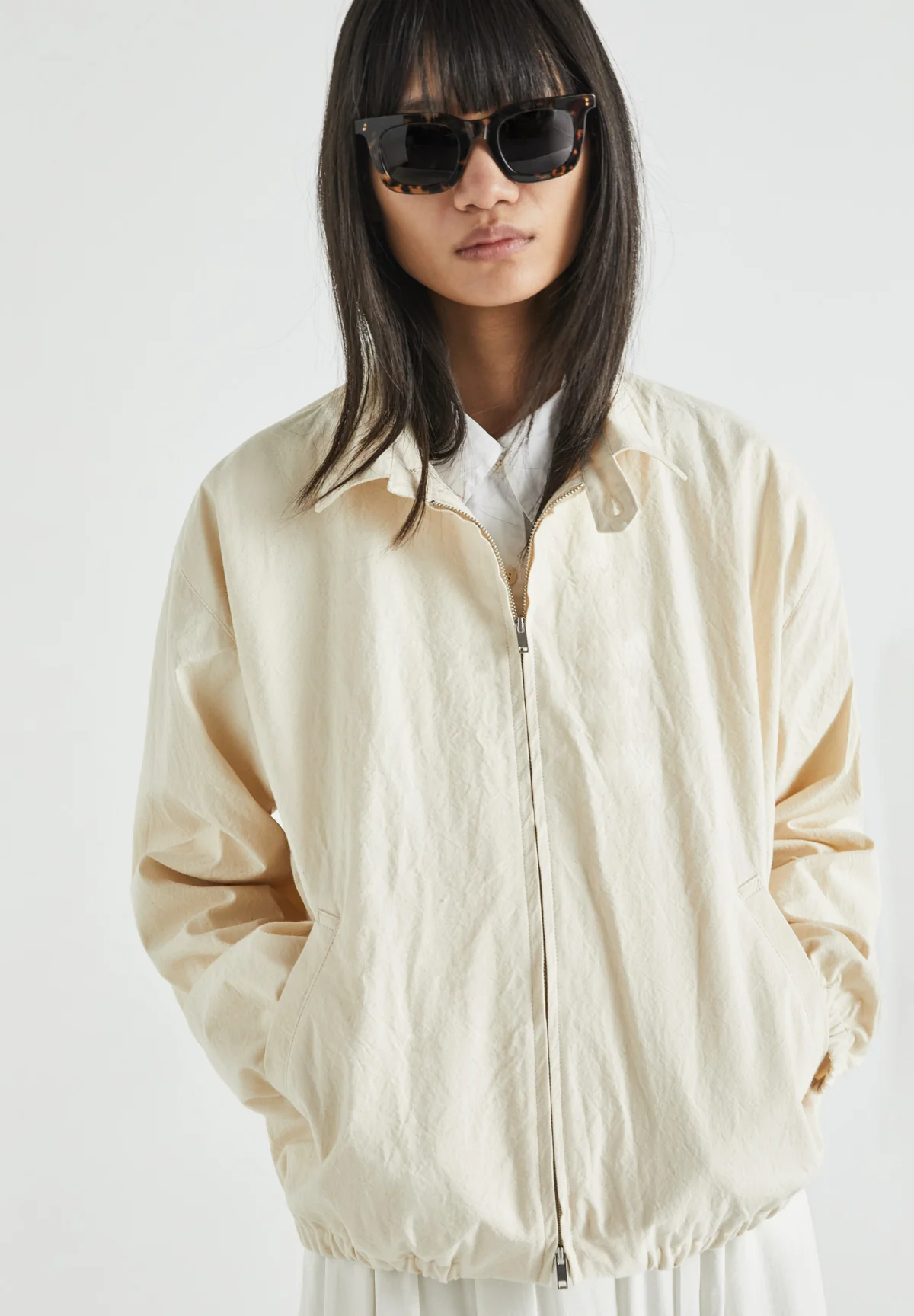 Classic collar, double-slider front zip.