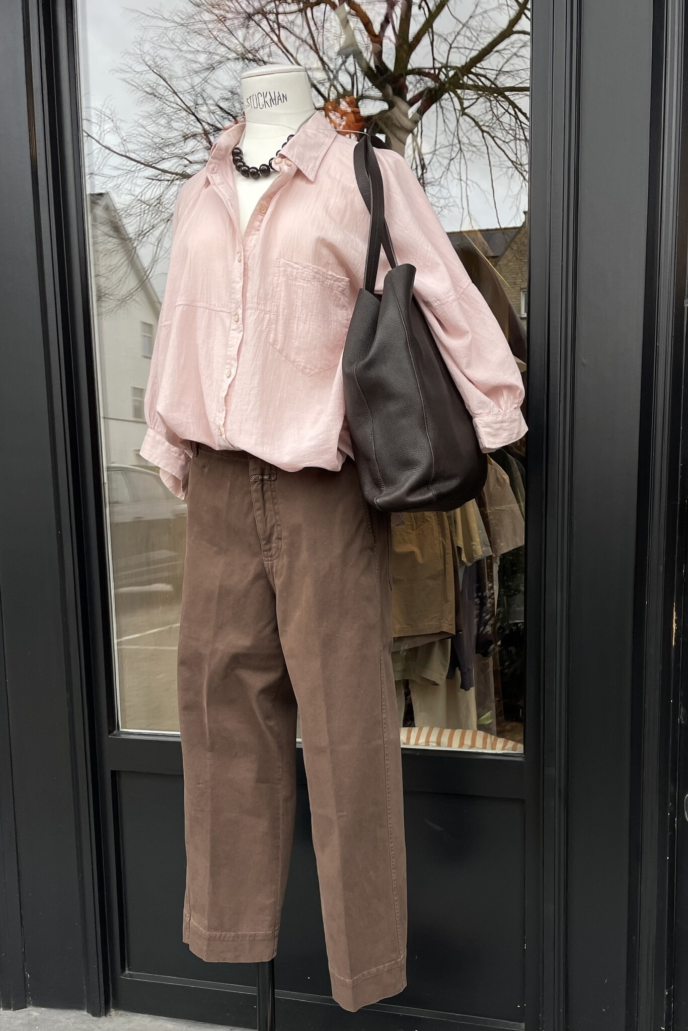 The Rovea pants offer a relaxed fit with mid-rise and cropped length. Made from organic cotton twill with stretch, these pants feature front pockets, a seamless waistband, signature details, and a Closed fly label. Made in Romania using 97% organic cotton.