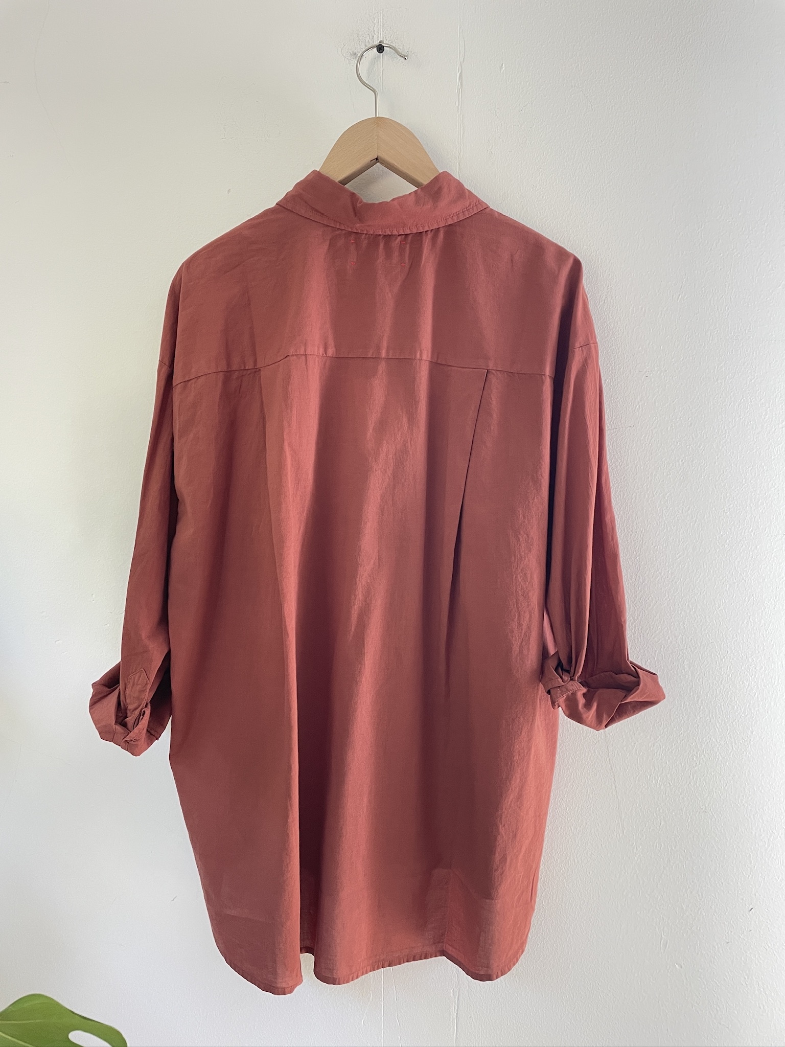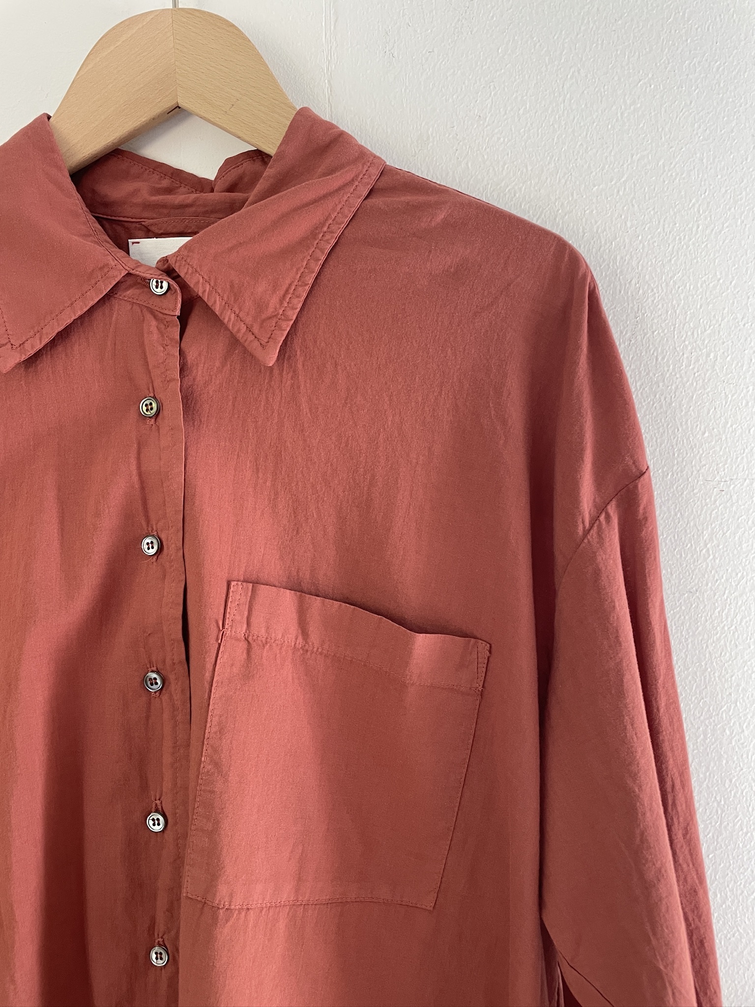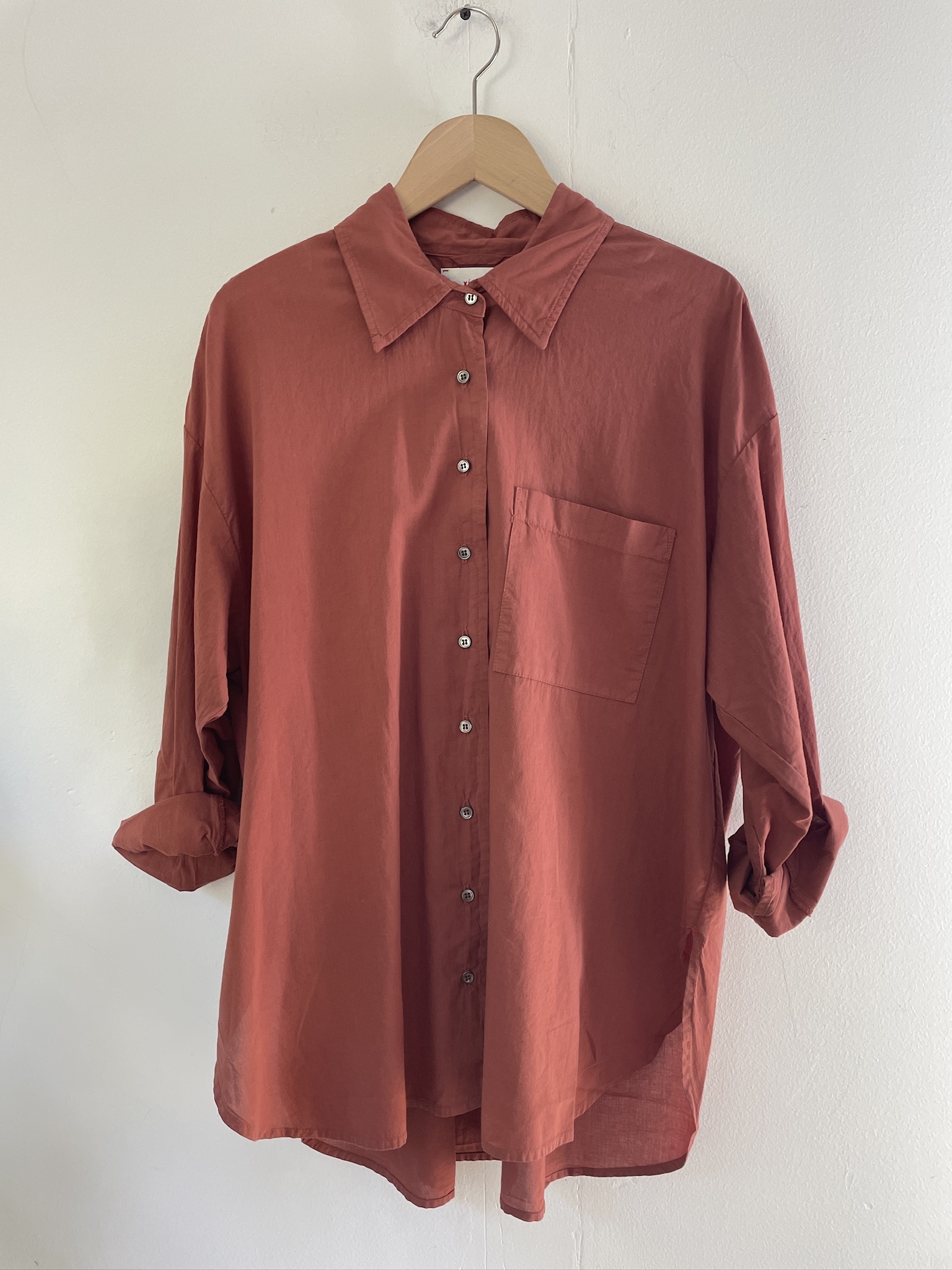 Easy does it. Sydney is made in our classic lightweight woven cotton poplin for a lived-in look and feel. Sydney is an oversized button-down shirt with a left chest patch pocket.