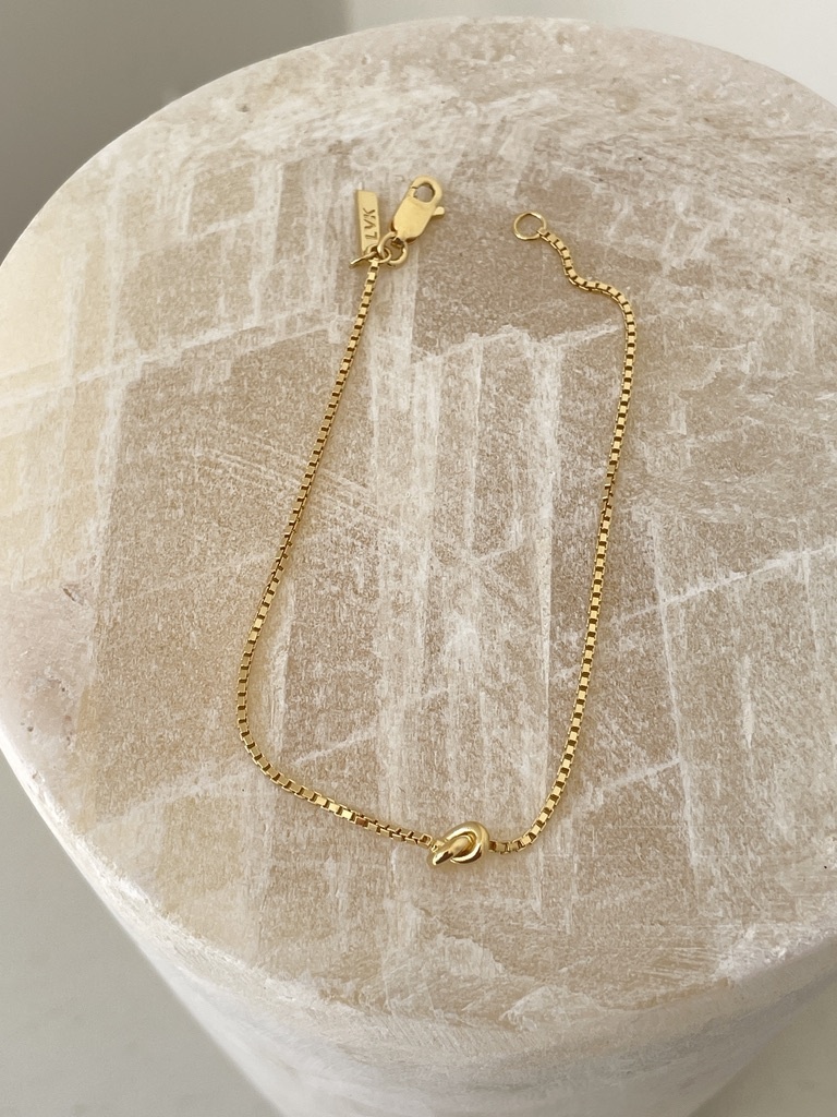 This minimal bracelet with a knot symbolises connection and harmony, blending simplicity with a timeless, understated elegance