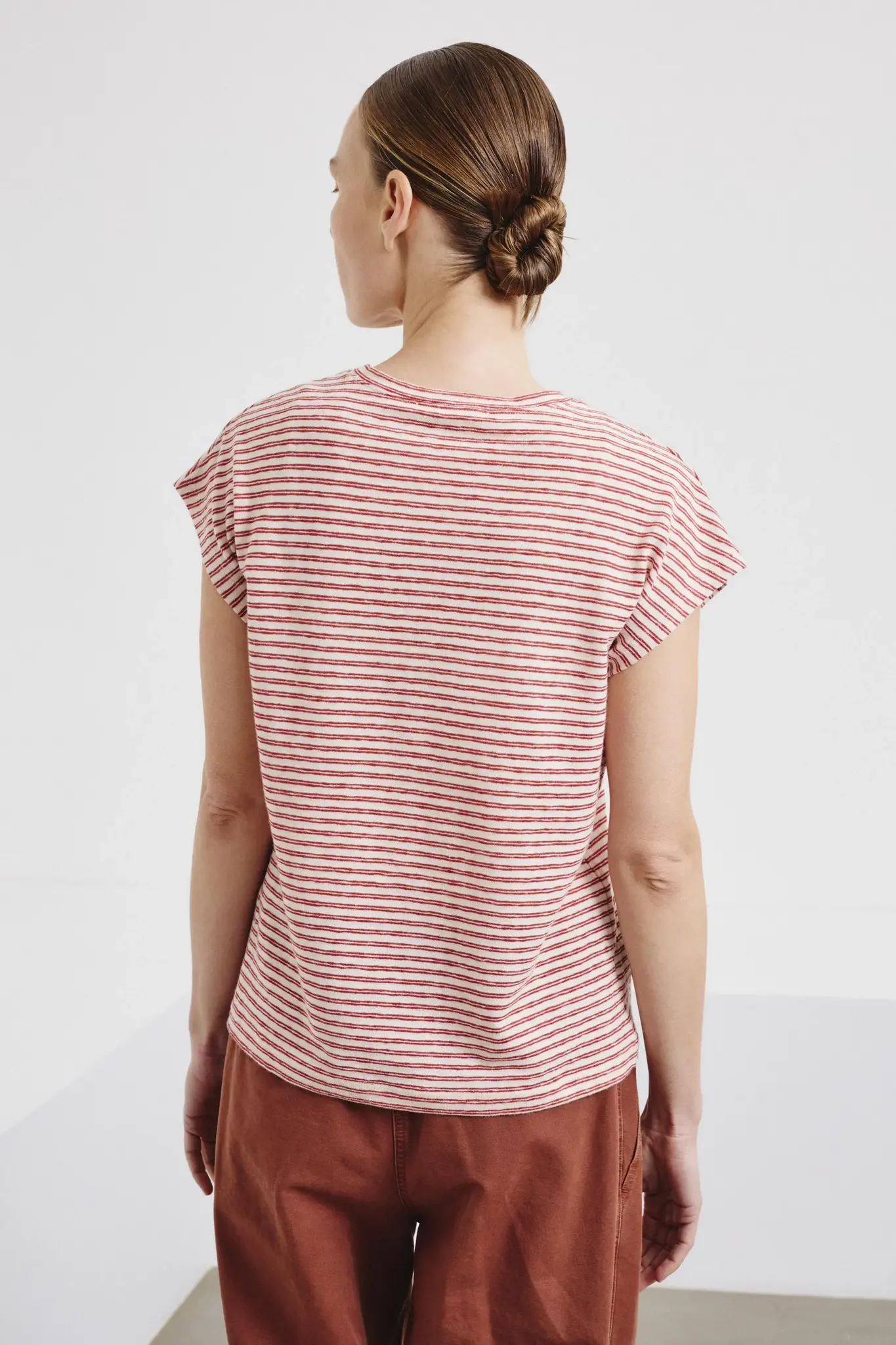 Sporty attitude and precious details define the striped cotton and linen jersey top. The design features a casual striped pattern, while the comfortable volumes make the garment versatile. Seasonal hues enrich the fabric, fresh and pleasant to the touch, with color and vitality.