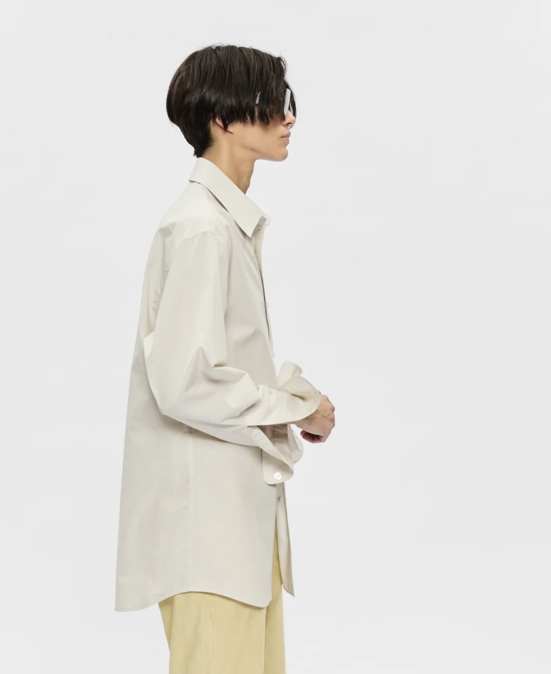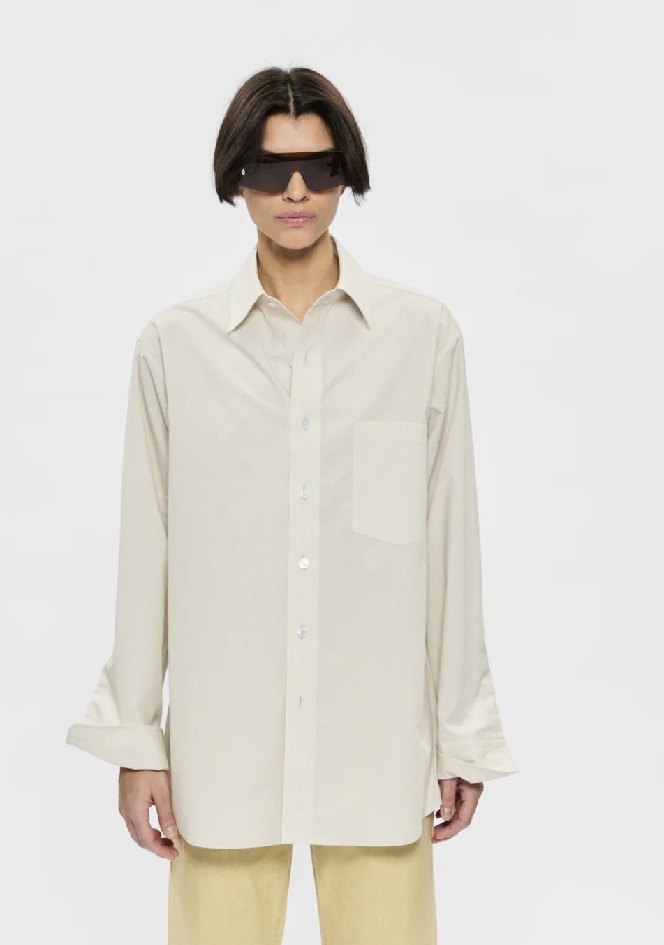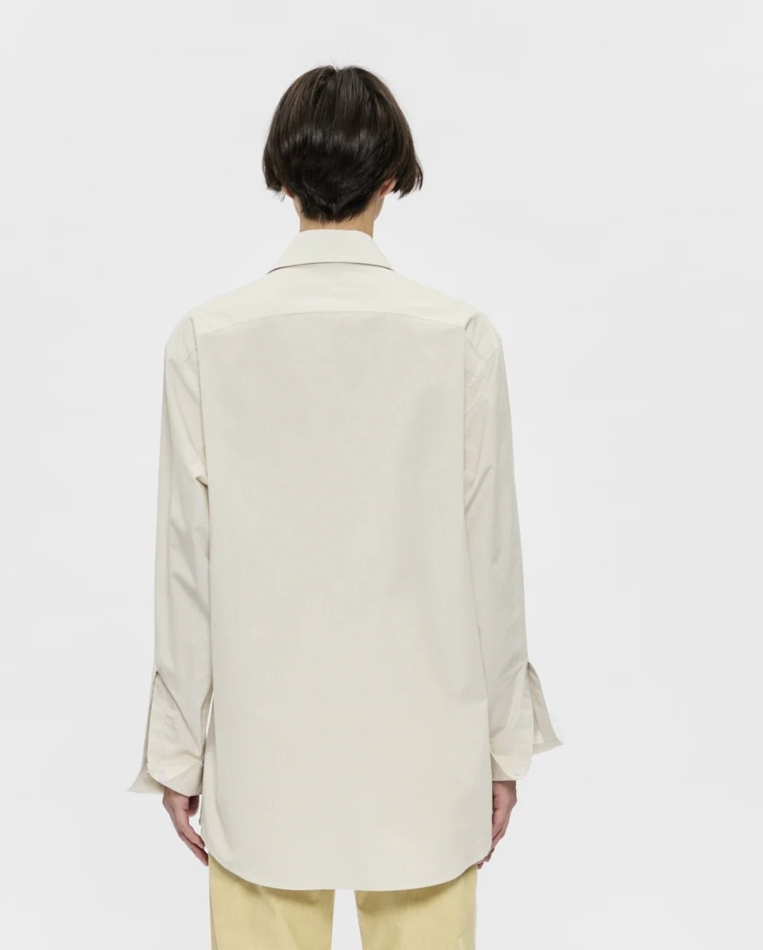 The Union Shirt in Blonde Stripe is cut in a crisp cotton poplin, with a relaxed elongated body.